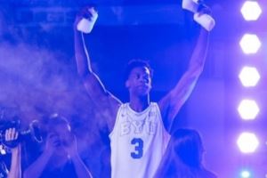 体育资讯10月11日讯 NCAA杨百翰大学开启了新赛季启动夜活动,进行了一场公开的队内蓝白对抗赛。